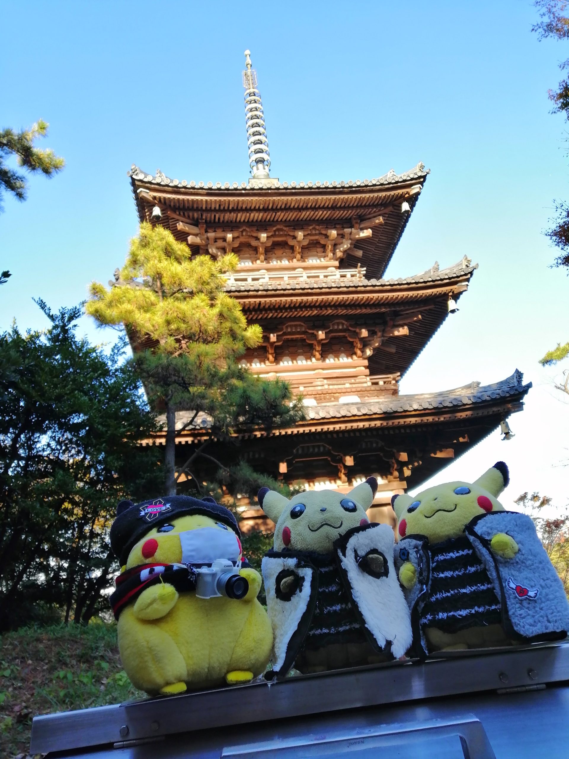 あっちに見える三重塔へ行ってみるぴか