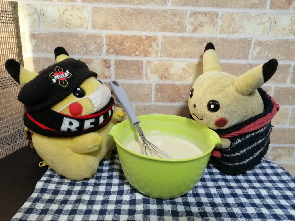 まず、粉を入れますちゅた