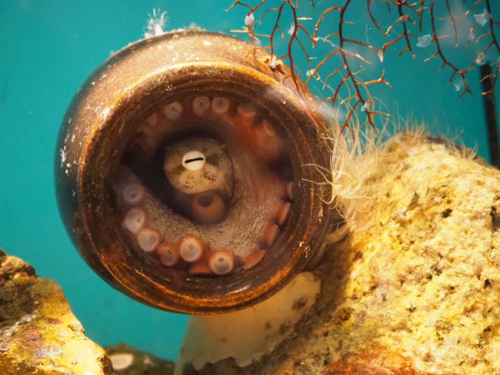 おっ、たこが蛸壺に入ろうとしてるぴか!