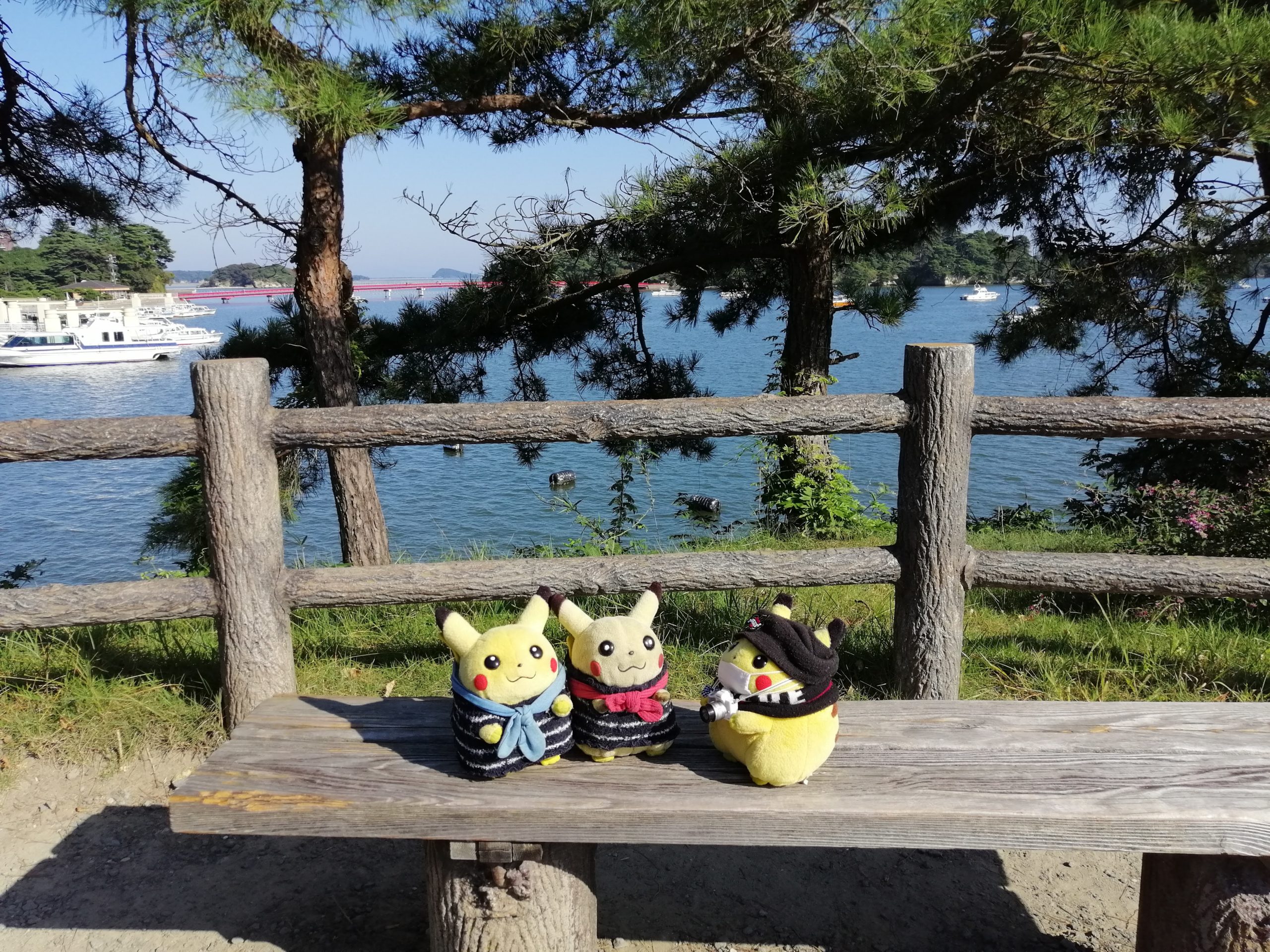 あっちに綺麗な橋と島があるぴか!