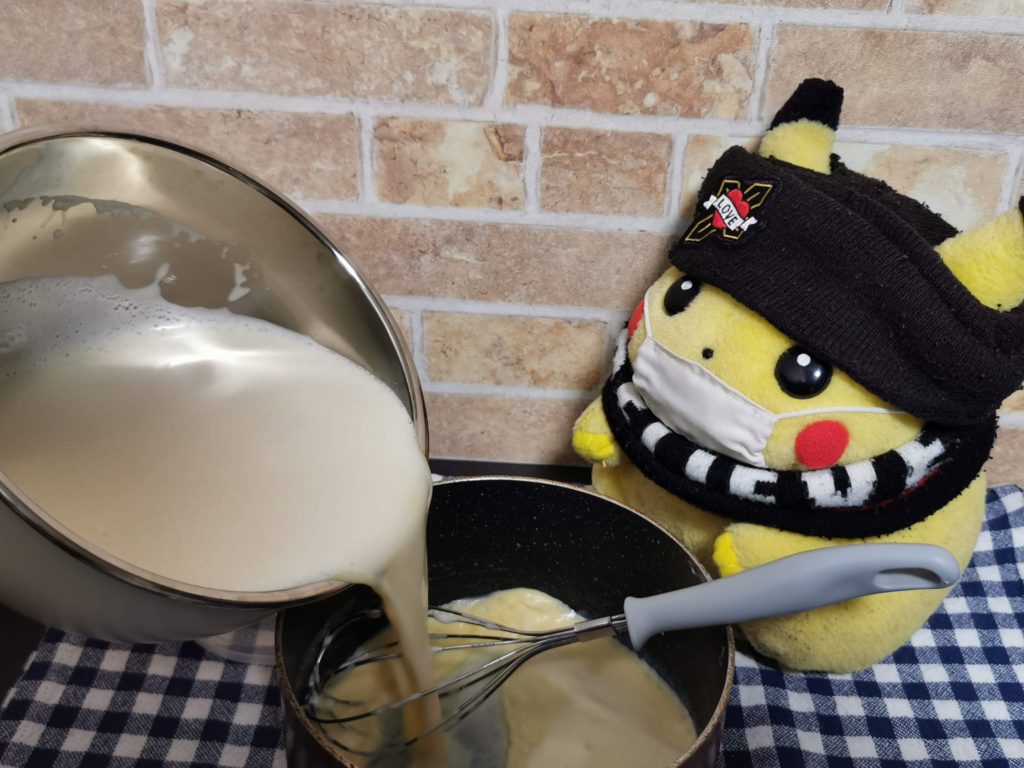 牛乳を加えていくちゅた